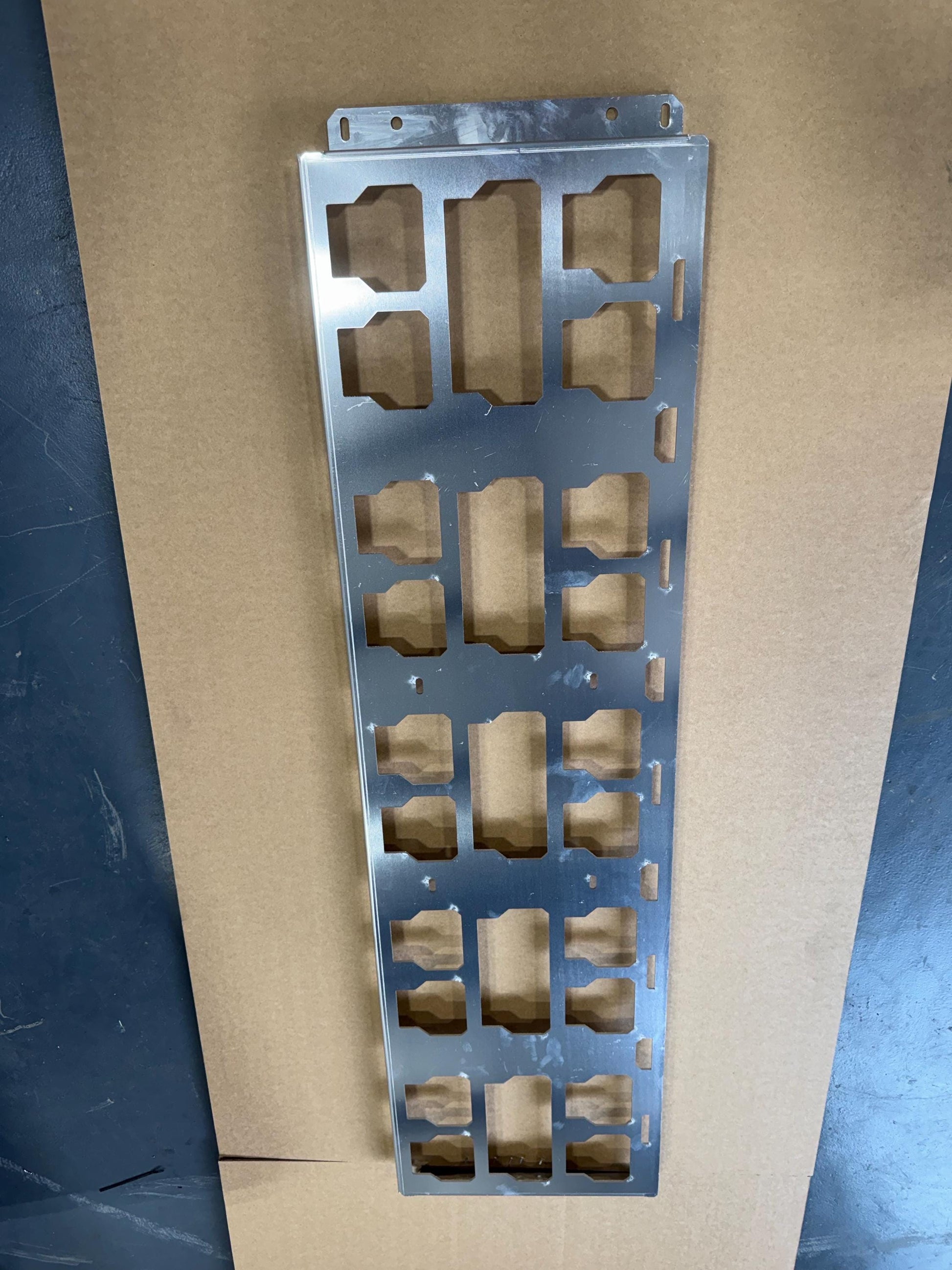 Side mount or for wall mounting you pack out tools. NOTE. this is for the side mount only. and sizes are based on the pack out racking system. so a 48 inch is made to bolt onto the side of the 48inch pack out rack system we manufacture actual sizes are 60 inch version is 52.5 over all length. and based on 1 inch centers 48 inch version is 43 over all length and is also based on 1 inch centers 30 inch version is 22 inch over all length and is also based on 1 inch centers These are made from 5052 aluminum and are 1/8 thick these units are designed for the pack out shelf we offer. but they can be mounted directly to a wall if needed. hardware is included and simple hand tools are required. pack out large kits link